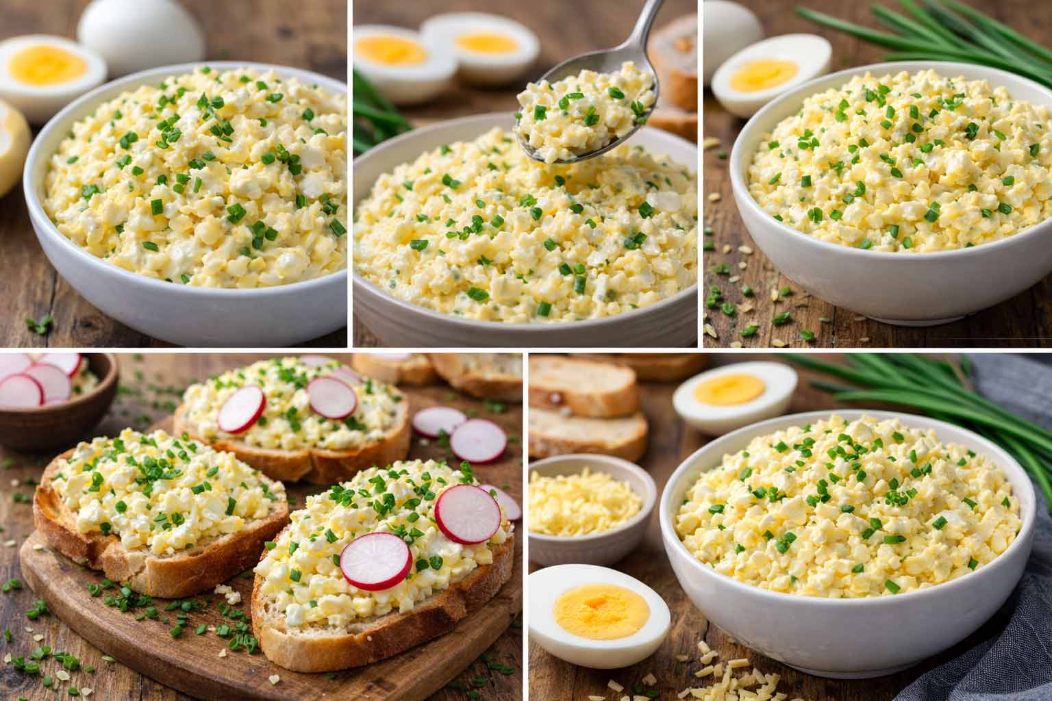 Składniki: 3 jajka 10 dag.pikantnego sera żółtego 1 pęczek szczypiorku sól pieprz 1 ząbek czosnku 2 łyżki majonezu Wykonanie: Jajka ugotować na twardo , ostudzić i obrać ze skorupek. Jajka i szczypiorek posiekać. Ser żółty zetrzeć na dużych oczkach. Czosnek, jeśli ktoś lubi przepuścić przez praskę. Wszystko połączyć, doprawić i wymieszać z majonezem.